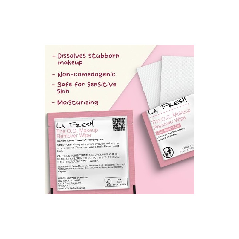 - RESPONSIBLE INGREDIENTS - A highly refined make up remover wet wipes made with purified mineral oil that does not clog the pores. La Fresh wipes are made with responsible ingredients and are never tested on animals.