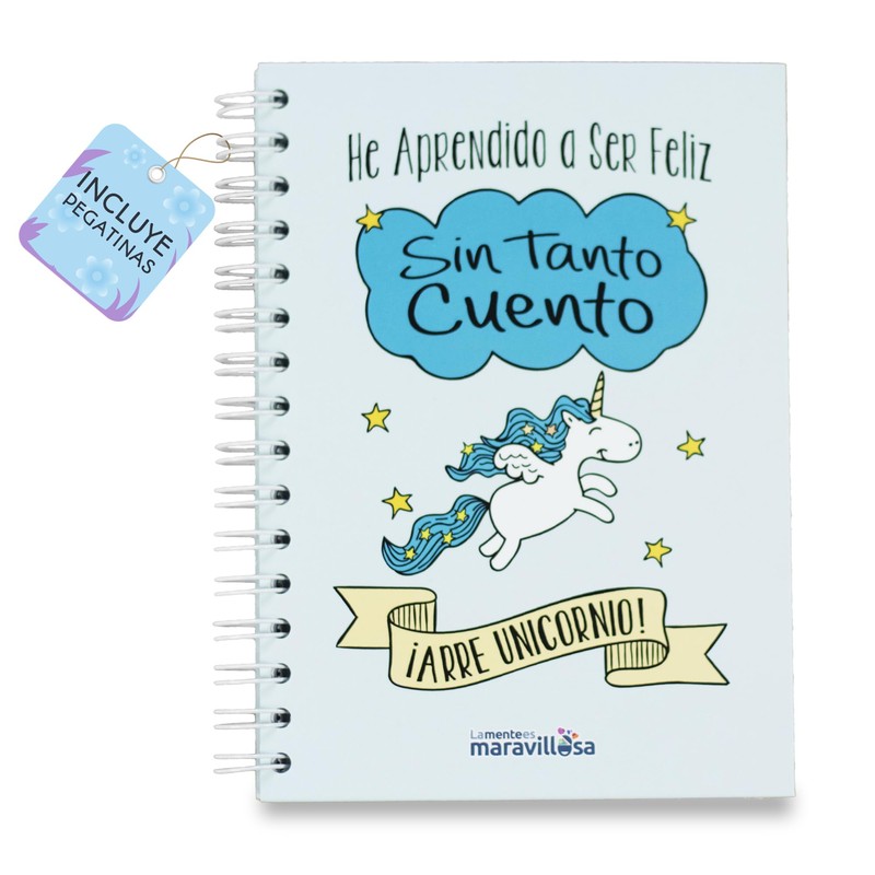 LA MENTE ES MARAVILLOSA - A5 Spiral Notebook Hardcover and Set |Ser Feliz sin Tanto Cuento. ¡Arre Unicornio!| Notebook with 90g Sheets and Stickers