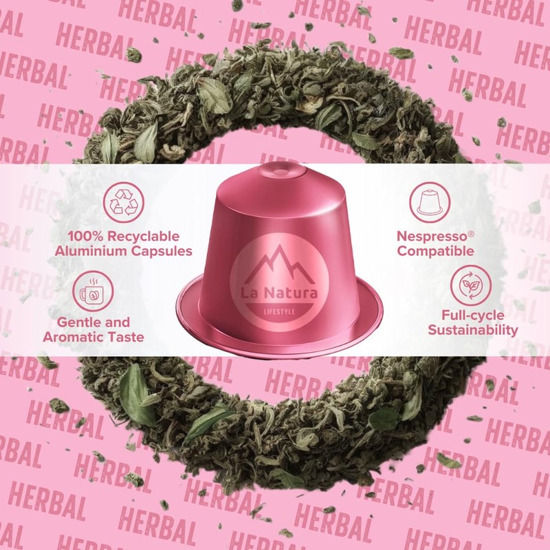 La Natura Lifestyle 120 x Herbal Tea in Aluminium Capsules, Compatible with Nespresso®³ Capsule Machines, 100% Recyclable, Masterful Combination of Selected Herbs, Delicate Flowers and Aromatic