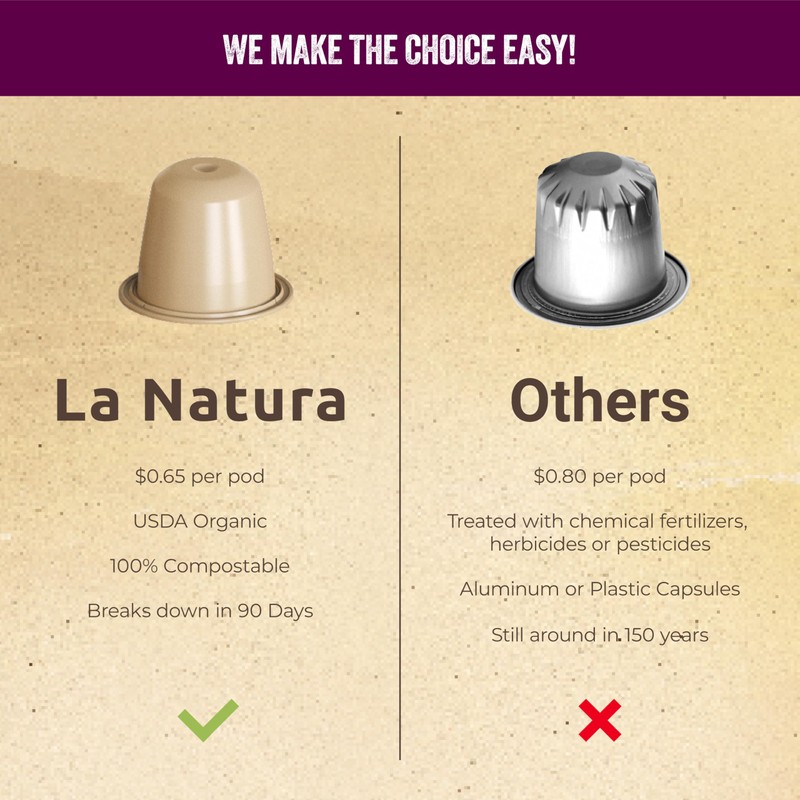- Environmentally Conscious Choice - Enjoy premium coffee while caring for our planet with La Natura Beauty Coffee's compostable pods. These capsules decompose naturally and are compatible with the Nespresso Original Line, making you effortlessly contribute to a greener earth. Your beauty coffee feeds your soul and body with nurturing ingredients and aligns with sustainable practices that echo your eco-friendly ethos.