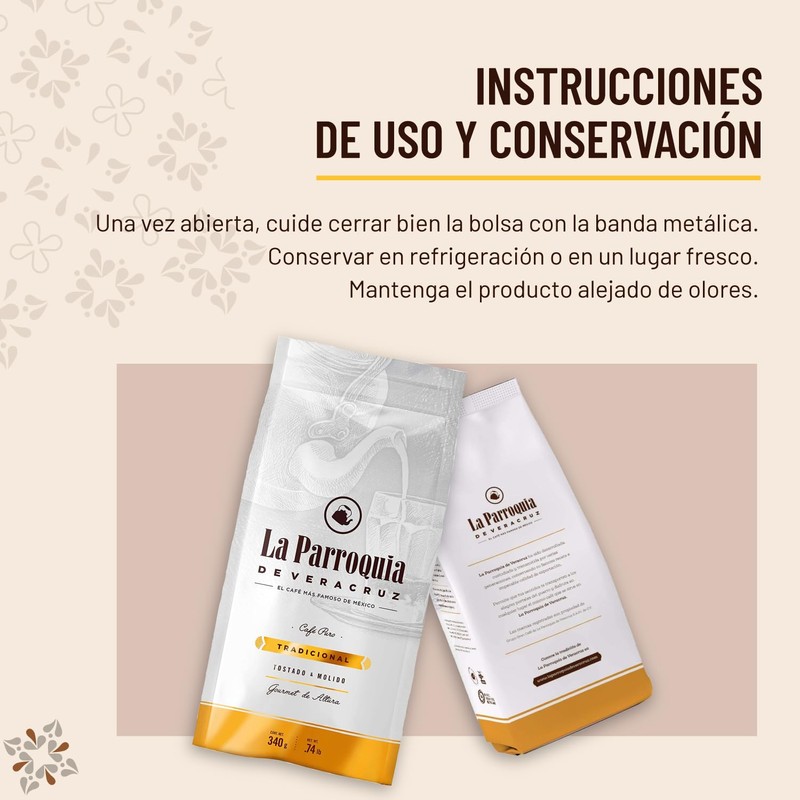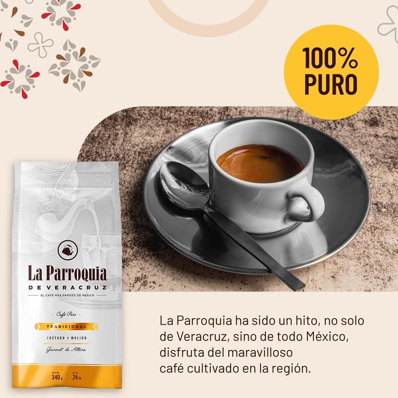LA PARROQUIA DE VERACRUZ - Bolsa de Café Molido, Tostado y Tradicional, 340 g, Café Puro 100%, Elaborado con Alta Calidad, Café con Aroma Intenso y Agradable, Cuerpo Completo