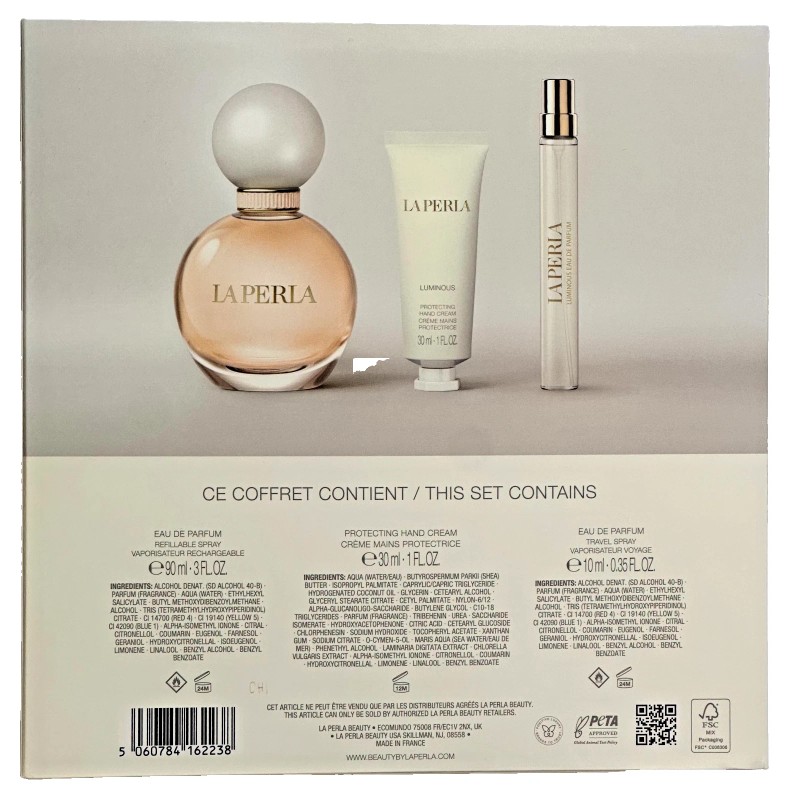 LA PERLA Luminous WOMEN SET 3 oz EDP Refillable SP + 0.35oz Sp + 1 oz Hand Cream