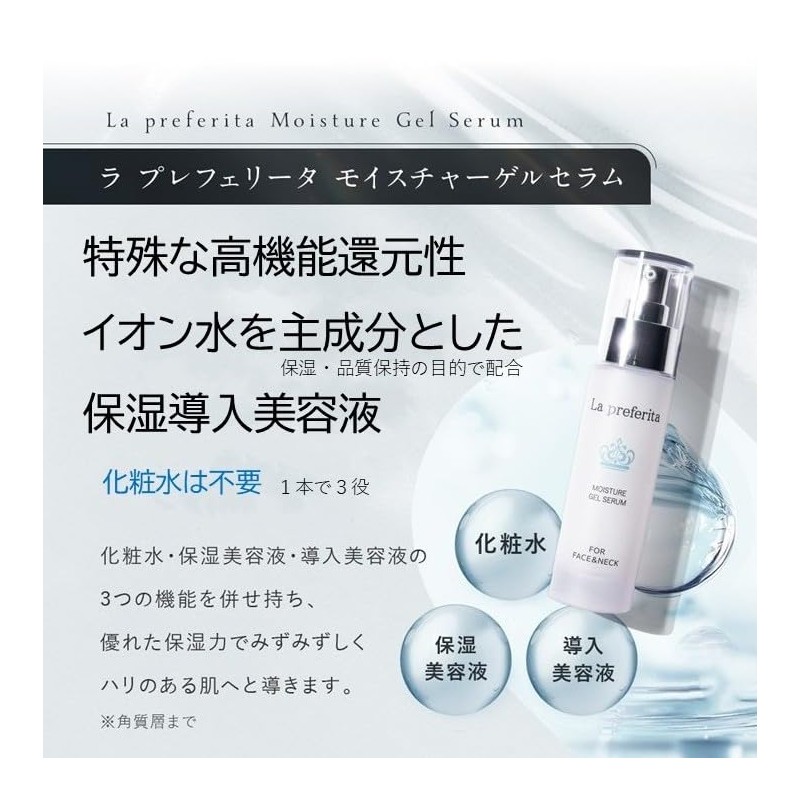 La Preferita Moisturizing Serum, 1.7 fl oz (50 ml), High Performance Reducing Ionic Water, Bactiol Formulation, Albutin Hypoallergenic Formulation, Preservative-Free, Made in Japan
