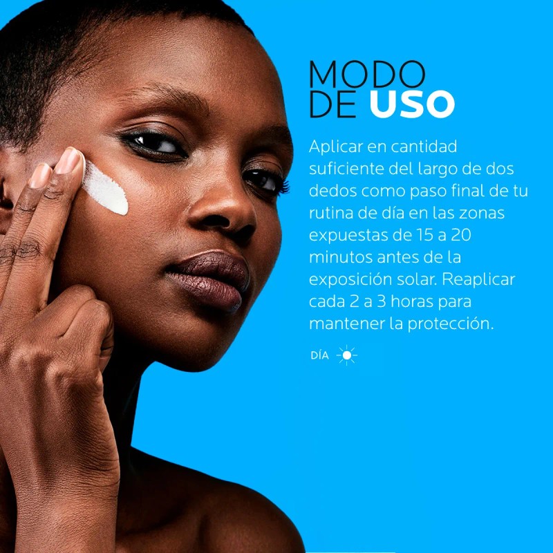 - Aplicar la cantidad del largo de dos dedos 20 minutos antes de la exposición solar y como último paso de tu rutina de cu