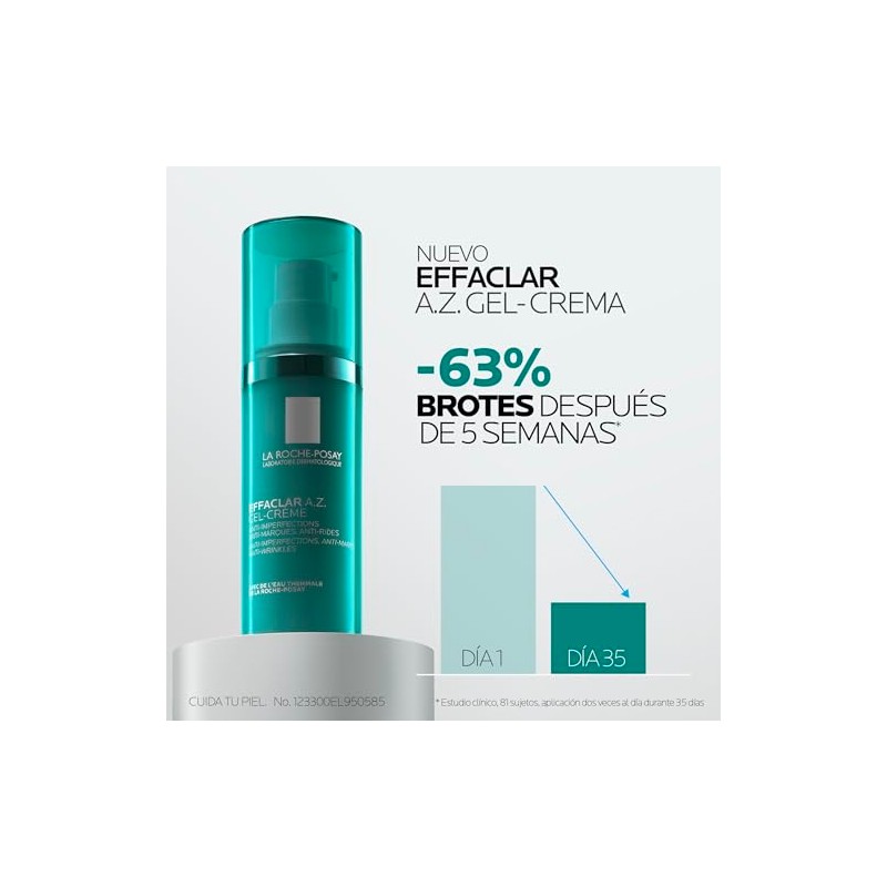 La Roche Posay Effaclar A.Z Gel-Crema con accin antimperfecciones y antiarrugas con cido azelaico, cido saliclico y cido hialurnico para pieles...