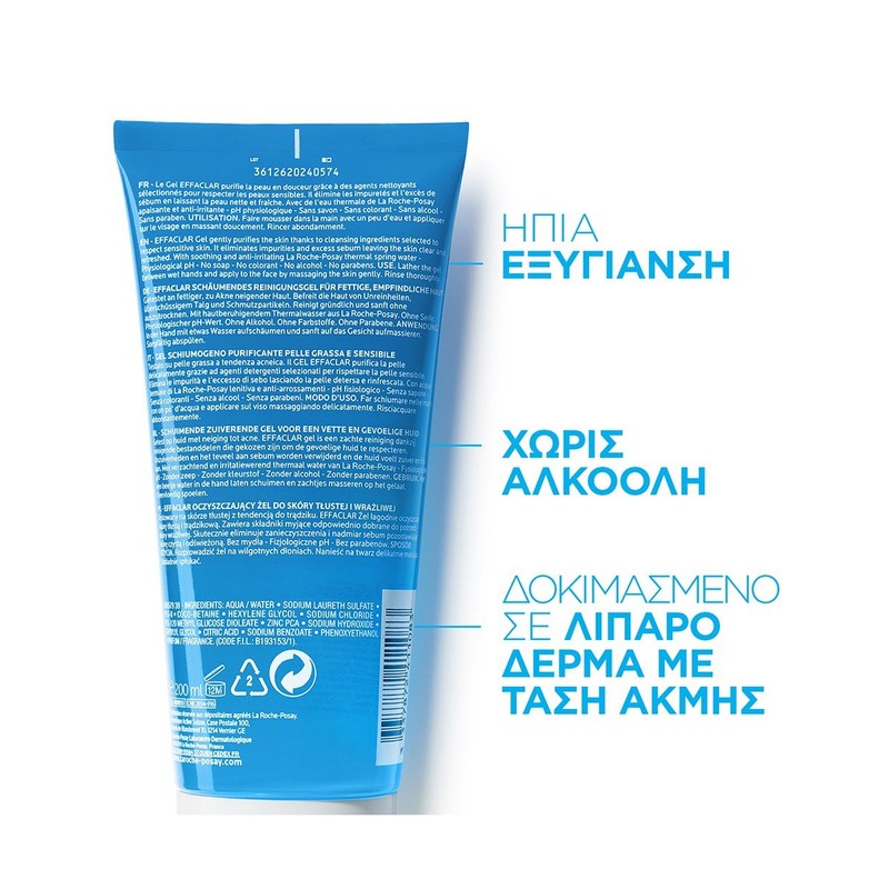 La Roche Posay Effaclar +M Purifying Foaming Gel for Oily Sensitive Skin, 200ml