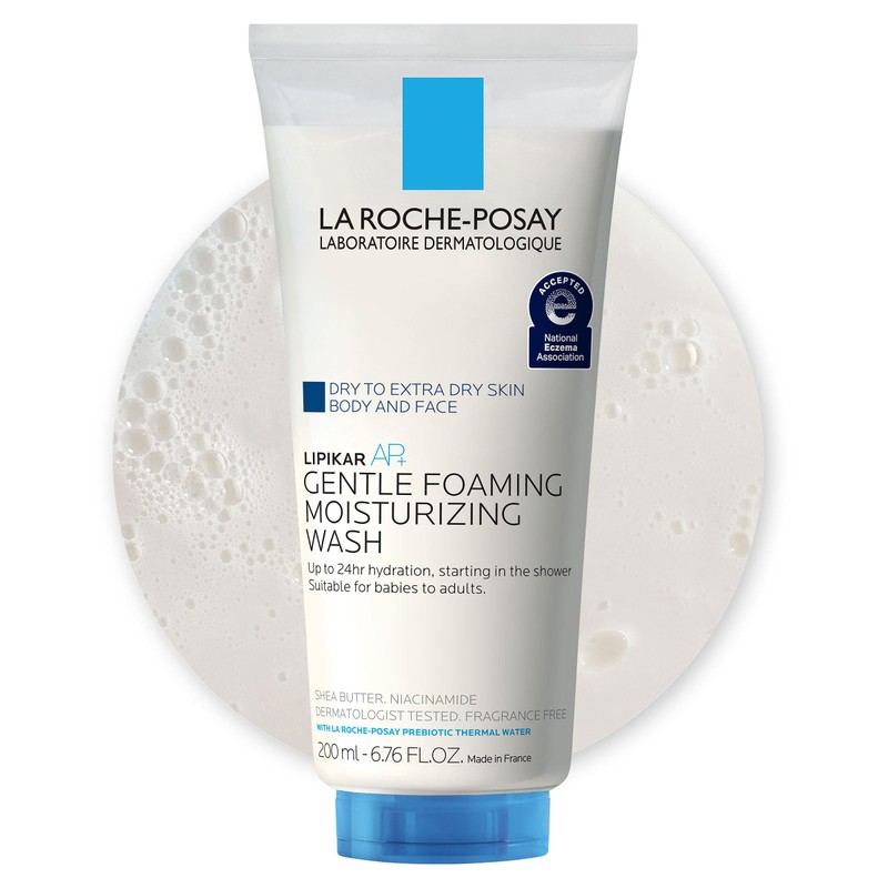 La Roche-Posay La Roche-Posay Lipikar AP+ Gentle Foaming Moisturizing Wash, Shea Butter + Niacinamide + Glycerin, Moisturizing Body Wash & Face Wash For Dry Skin, National Eczema Association Accepted, Soap Free