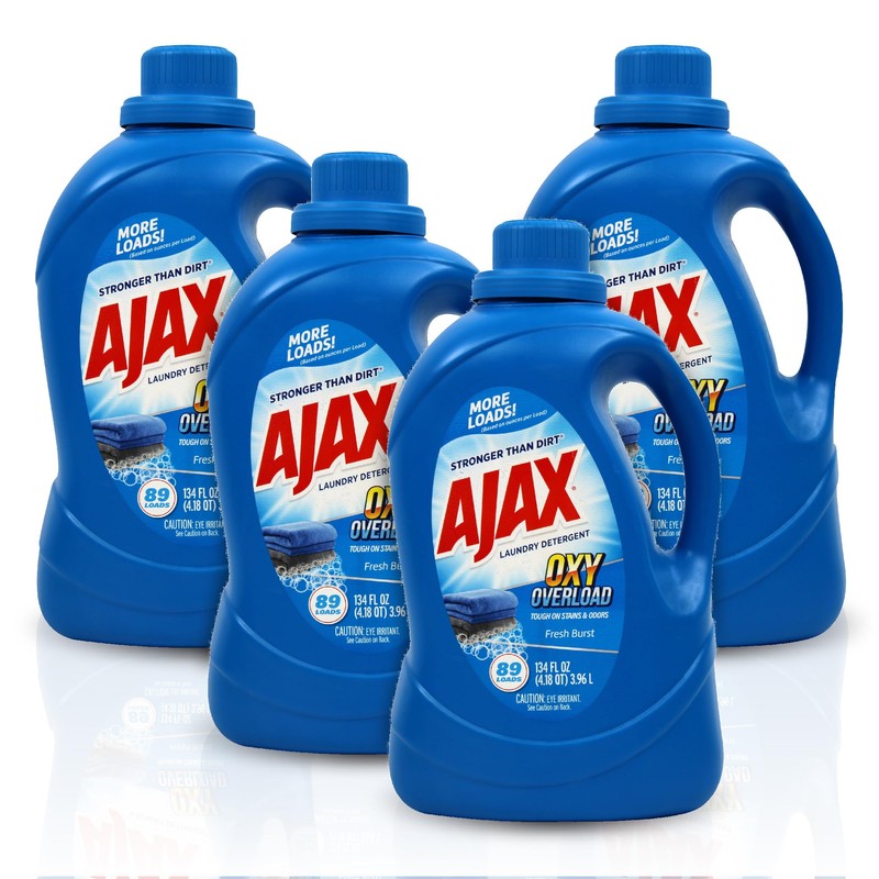 La's Totally Awesome Ajax Oxy Overload Liquid Laundry Detergent, 134oz (Pack of 4) C Totally Awesome Cleaner with Deep Cleaning, Stain & Odor Removing power, HE Compatible, 178 Loads, Fresh Burst Scent