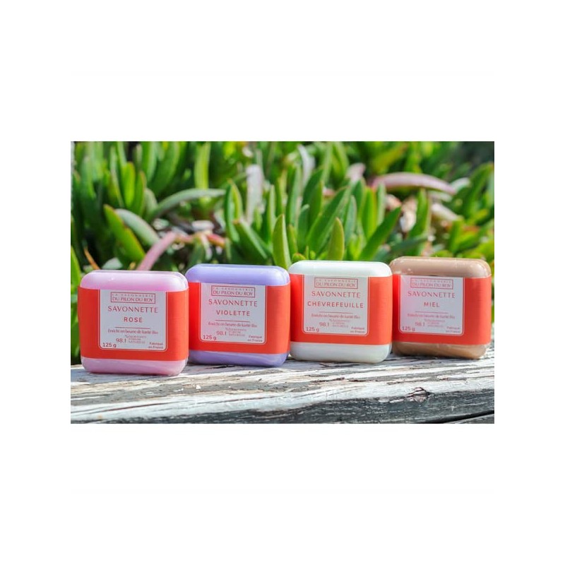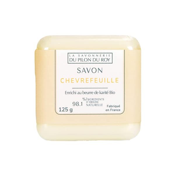 This soap scented with honeysuckle, will envelop you in softness. Femininity and Elegance. Made in France Made with 98.1% natural ingredients. Its suave and jasmine notes are ideal for bringing a touch of femininity and elegance to your beauty routine. Enriched with Organic Shea Butter. Dynamic and elegant, the floral notes of our soap will immerse you in a little cocoon of well-being. Your skin will be silky and soft, while being scented with fresh and vegetal notes.. Created, formulated and manufactured in Provence, with the greatest respect for traditions. Wrapped in cello.