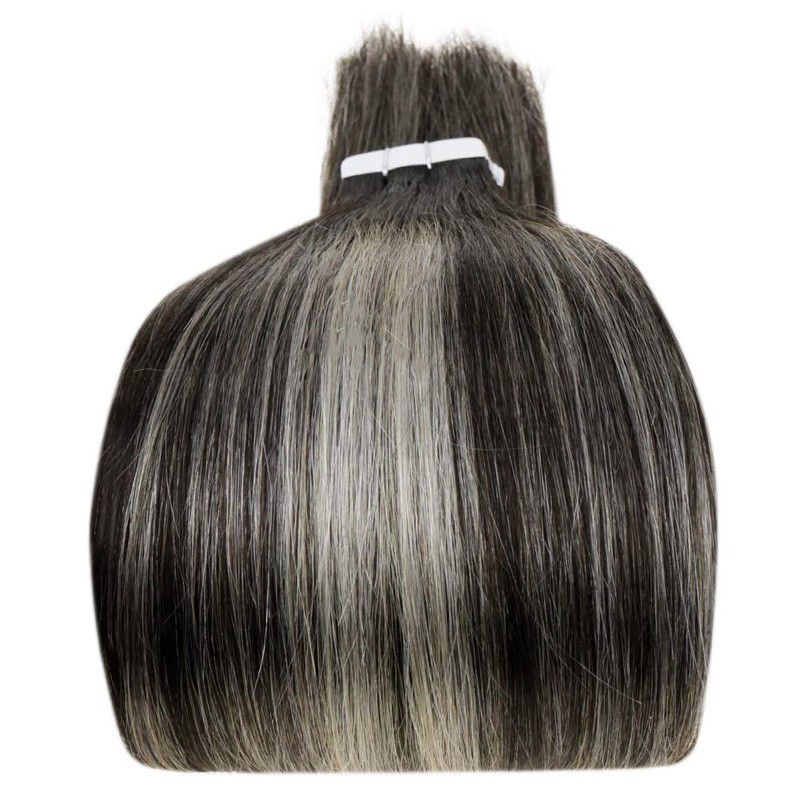 - 【Fashionable Color】 Black Ombre Remy Tape Human Hair Extensions; Color #1b/silver Off Black Ombre Silver Grey. 【All Photos are Taken by LaaVoo Hair. Different Monitors Will show color a bit different. Please Just Feel Free to Contact With Seller If You Have Any Troubles About Choosing Colors】