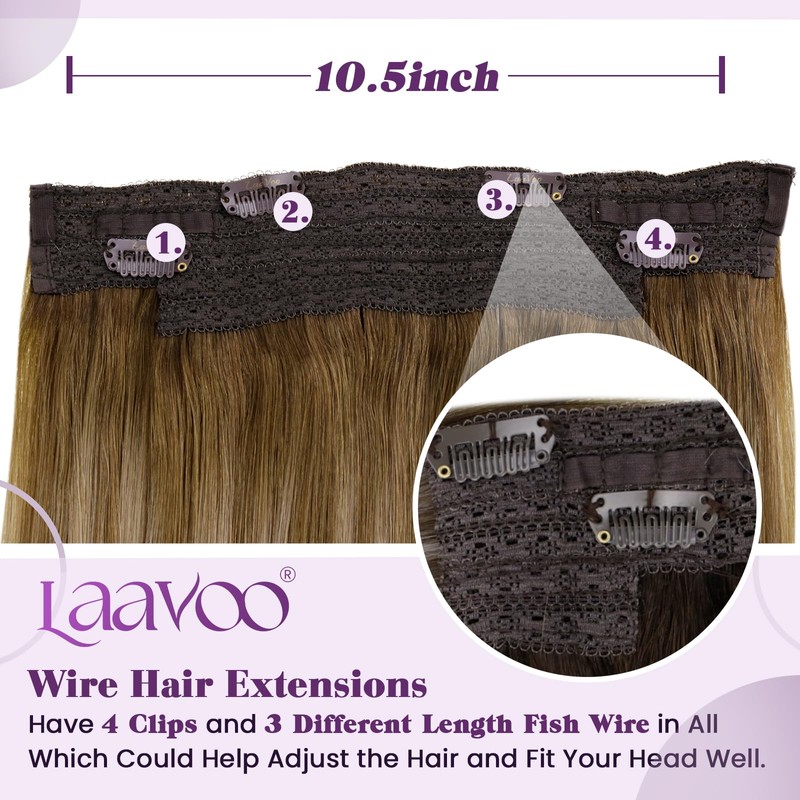 - Real human hair: LaaVoo wire extensions human hair are made of real hair; soft and comfortable; can be treated and styled; can be dyed to a darker colour; when styling, please make sure that the temperature is below 180°C