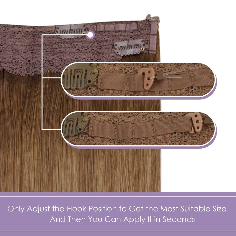 - Comfortable, lighter and healthier: unlike conventional hair extensions, these real hair extensions with wire are not tape-in extensions, and feature a hidden transparent wire that fits perfectly with your hair colour