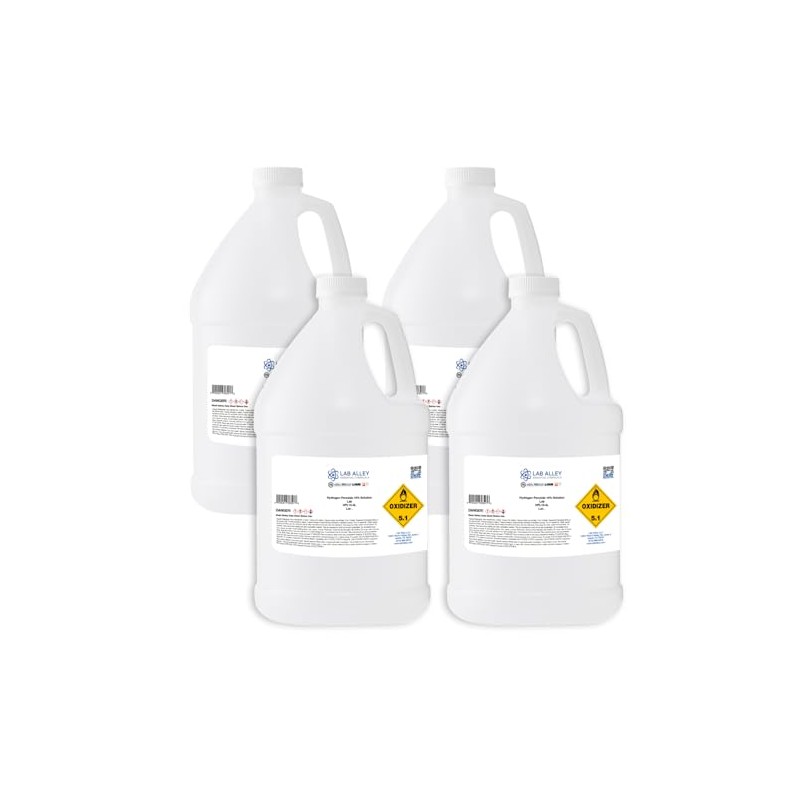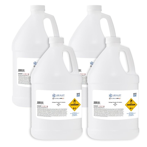Lab Alley Hydrogen Peroxide 10% Lab Grade, for Kitchen, Bath, Laundry, and Home - 16 Liters (Pack of 4 x 4 Liter Bottles)