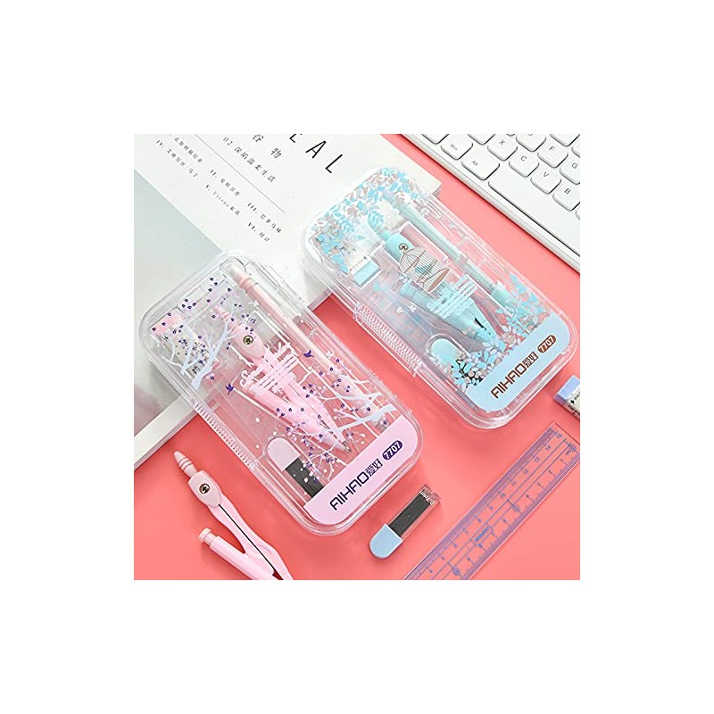 - Package Includes: 1 x compass, 1 x ruler, 2 x set squares, 1 x protractor, 1 x pencil, 1 x graphite refills, 1 x Eraser