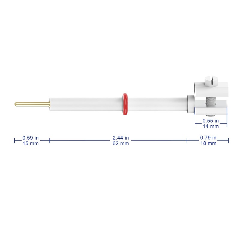 - The clamp can hold materials with thicknesses ranging from 0.1 to 5 mm; built-in 10 x 10 mm platinum plate acts as conductive substrate, PTFE body, and gold-plate copper rod as terminal
