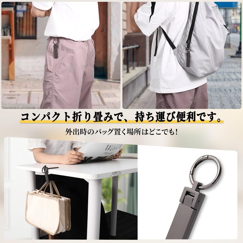 - (2 functions as a bag hanger and smartphone stand) This item is useful as a bag hanger, table hook, luggage hanger, or hook, but it can also be used as a smartphone stand, with an opening angle of about 70°, giving you a comfortable viewing experience. We've solved the problem of placing your bag and viewing problems when you are on the go