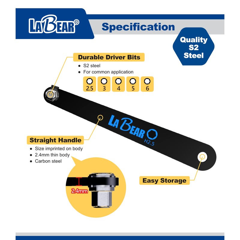 LABEAR - Metric HEX Ultra Low Profile Offset Screwdriver Set 5 Piece, 90 Degree Straight Slim Plate For Tight Area, EDC Screwdriver 5pcs Set