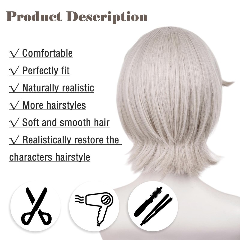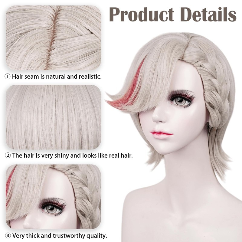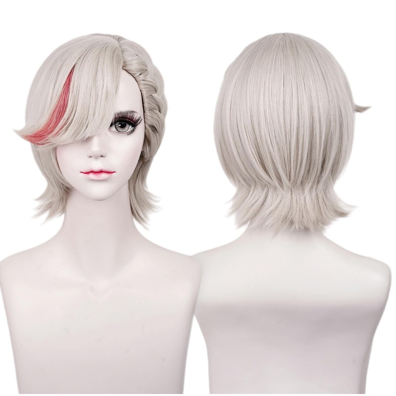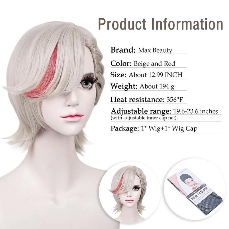 LABEAUTÉ Max Beauty Cosplay Silver Red Wig for Women Man with Bangs, Short Straight Hair Daily Wig for Cosplay Synthetic Hair for Halloween Costume Party Hair Wig + Wig Cap(Length 12.99 Inches)…