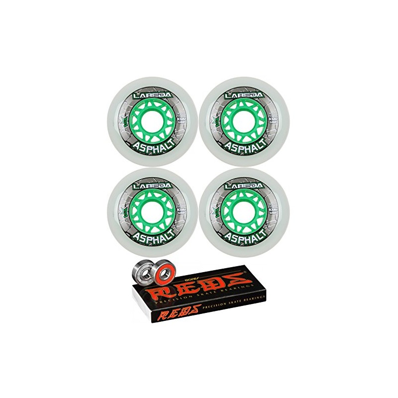 Labeda Asphalt Inline Roller Hockey Wheels 80mm White 83A 4-Pack Bones Reds