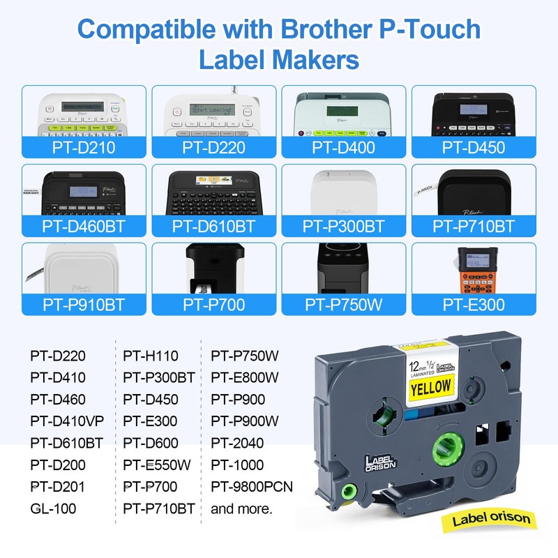 Label Orison Compatible Label Tape to Replace Brother TZe-631 TZE 631 Black on Yellow 12 mm Label Tape for Brother PT-1000 1010 1080 H105 E110 P300BT H100LB D200BW P700 E110 D400, 2x