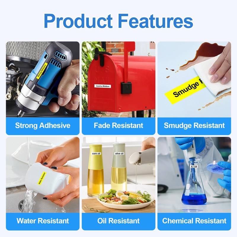 - Standard laminated: label tape, carbon ink and laminated 3-to-1 design. It is durable, strong adhesive, abrasion resistant, chemical resistant, temperature resistant, fade resistant and waterproof, even in harsh conditions, suitable for indoor and outdoor use.