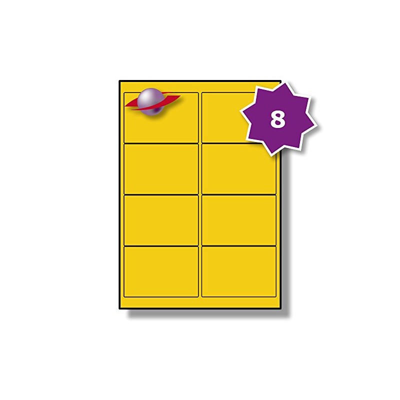 Label Planet® 8 Per Page/Sheet, 250 Sheets (2000 Sticky Yellow Labels), Blank Matt Quality A4 Coloured Paper Stickers, for Laser/Copier or Inkjet Printer, UK LP8/99C, 99.1 x 67.7 MM, Colour Coding