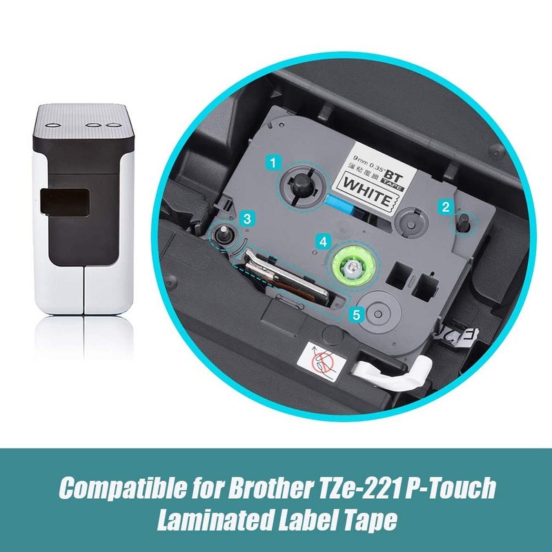 Labeling Tape 9mm Laminated Label Tape Compatible for Brother TZe-121 TZe-221 TZe-421 TZe-521 TZe-621 Tze-721Black on White