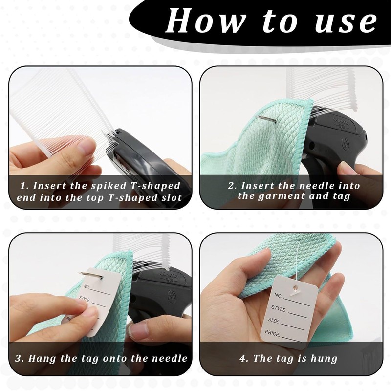 - Easy to use: insert the T-shaped end of the positioning wire into the T-shaped groove at the top of the labeling gun. Then insert the needle through the garment and label and press the release button. It's done. Please note: if the Velcro thread is not used up, please do not pull it out directly to avoid damage to the label gun. You can cut and take it out with scissors.