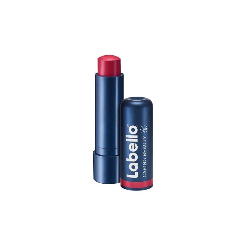 LABELLO Blsamo Labial Caring Beauty Red (4.8 g), Color Intenso y Cuidado Duradero con Vitamina E y Aceite de Almendras Orgnico