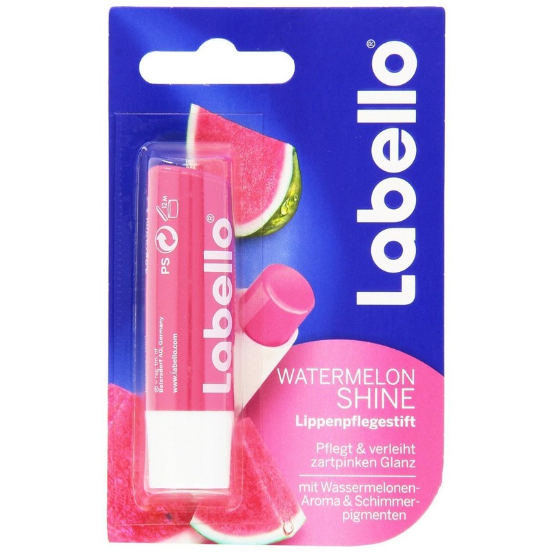 - Labello Watermelon Shine soothes dry lips and calms lip irritation with a delicious watermelon aroma.