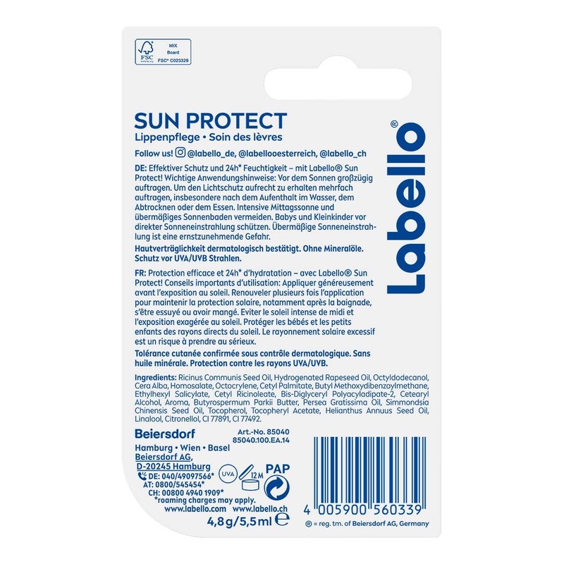 - Protects & cares for - Perfect for summer and holidays: the Labello Sun Protect protects against UVA and UVB rays and ensures carefree moments in the sun.