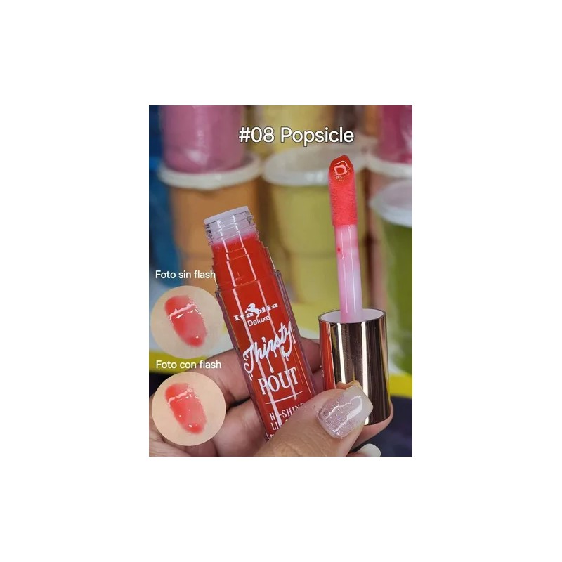 Labial Lip Gloss Thirsty Pout Hi-shine Italia Deluxe Brillo Acabado No Brillante Color 08 Popsicle