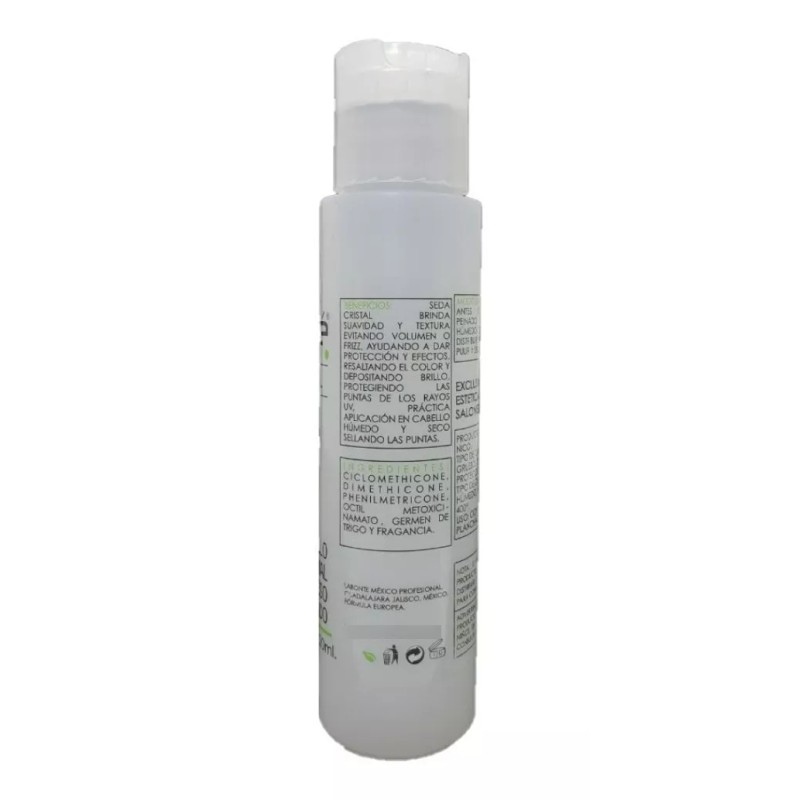 Seda Cristal brinda suavidad y textura evitando volumen o frizz, ayudando a dar protección y efectos, resaltando el color y depositando brillo, protegiendo las puntas de los rayos UV, práctica aplicación en cabello húmedo y seco sellando las puntas. Es recomendado para cabello normal o grueso.