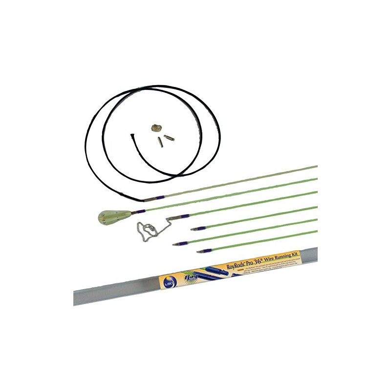 The most advanced and convenient wire running rod kit you can buy. This kit includes: one luminous (glows in the dark) fiberfuse 6Ft. Push/pull rod with male and female quick connect ends, one quick connect 6Ft. Fish-tailz 1/8" diameter mesh pull sock, one quick connect lighted bull-nose tip, luminous whisk quick connect tip, ball chain quick connect tip (12" ball chain length), and two female bull nose quick connect tips.