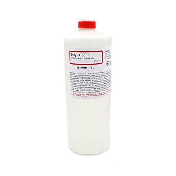 Laboratory-Grade Denatured Ethyl Alcohol, 95%, 1L (33.8 Ounces) - Ideal for Sanitizing Surface Cleaning
