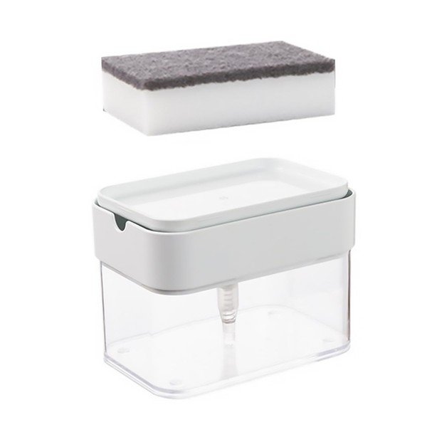 Soap Dispenser Set Easy and convenient for kitchen cookware washing, and it will increase your efficiency.sponge holder for kitchen sink This is sink detergent dispenser with sponge.sponge sink holder You just need to fill up your dish soap or detergent, then use the included sponge to press down on the dispenser, which dispenses the perfect amount of dish soap up onto the sponge