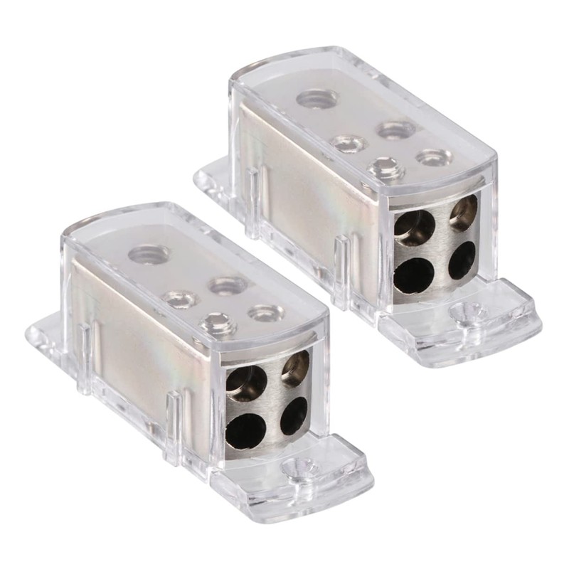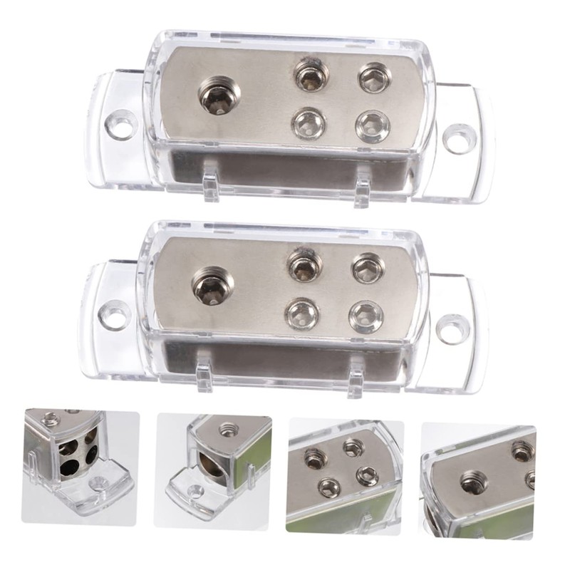 LABRIMP 2pcs Car Power Distribution Block Ways Splitter Box for Audio Amplifier Durable Resistant Transparent Shell Efficient Wiring for