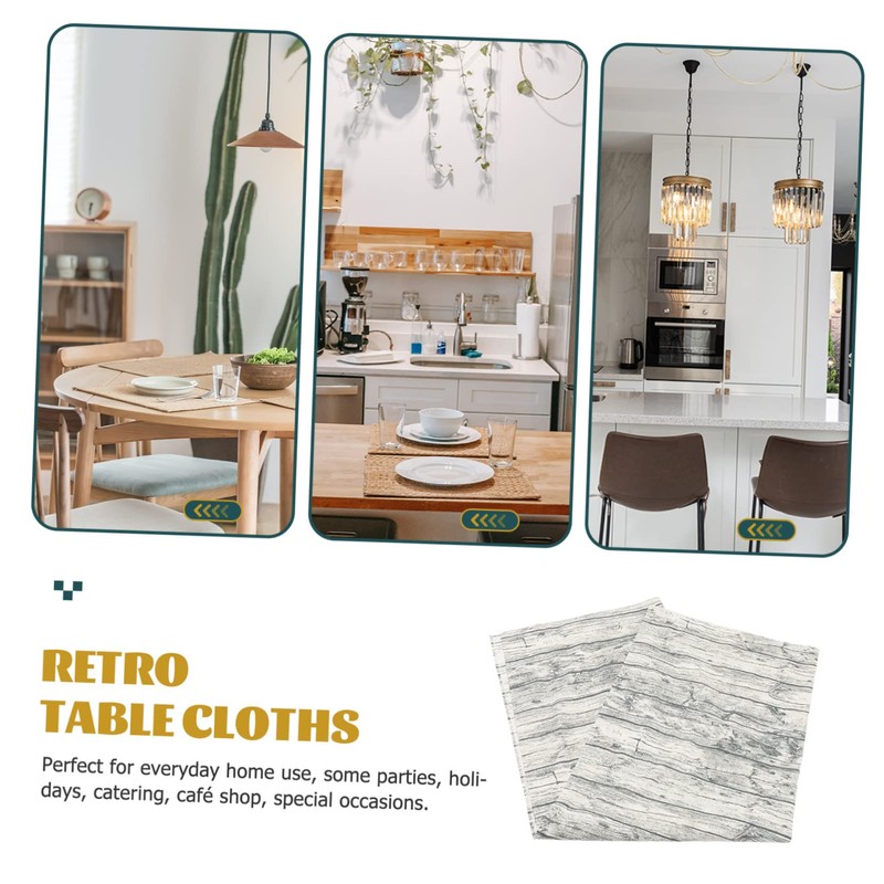 - Wood grain tablecloth-- this beautiful wood grain table cloth is folding, which is convenience to store and use.