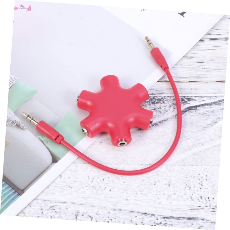LABRIMP Hexangular Headphone Jack Splitter Way Adapter Port Female Audio Connector for Phone Music Player PC Red Wide Compatibility with Devices