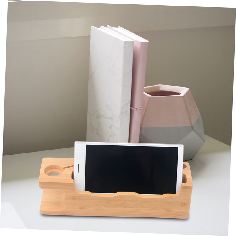 - This can be both used as phone holder stand, and at same time as a watch holder wood mobile phone holder.