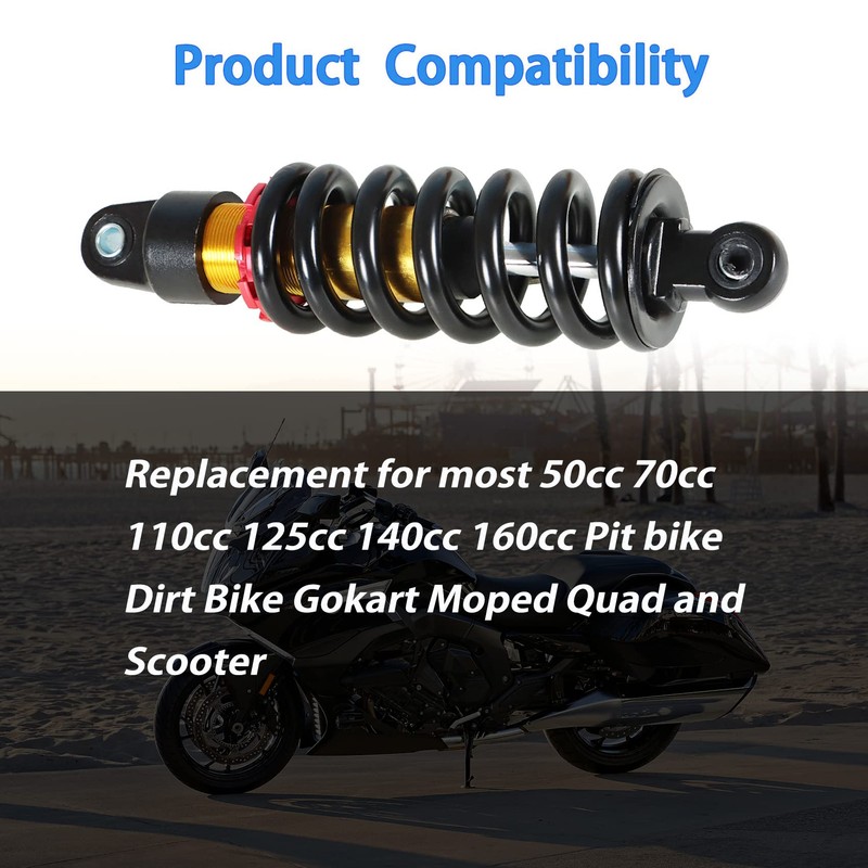 - This shock absorbers Replacement for most 50cc 70cc 110cc 125cc 140cc 160cc Pit bike Dirt Bike Gokart Moped Quad and Scooter