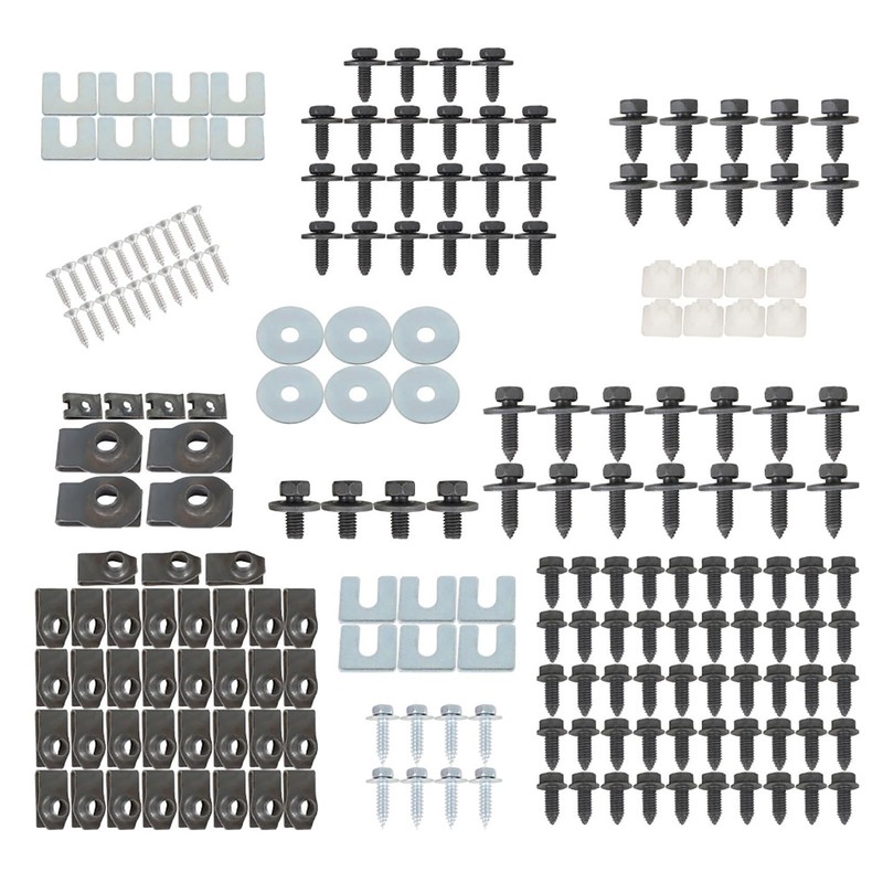• Complete Kit: The Front End Sheet Metal Kit includes 210 pieces of hardware to ensure a perfect fit for your truck. The kit includes mudapron bolts, clips, nuts, shims, and screws with a pristine matte black finish