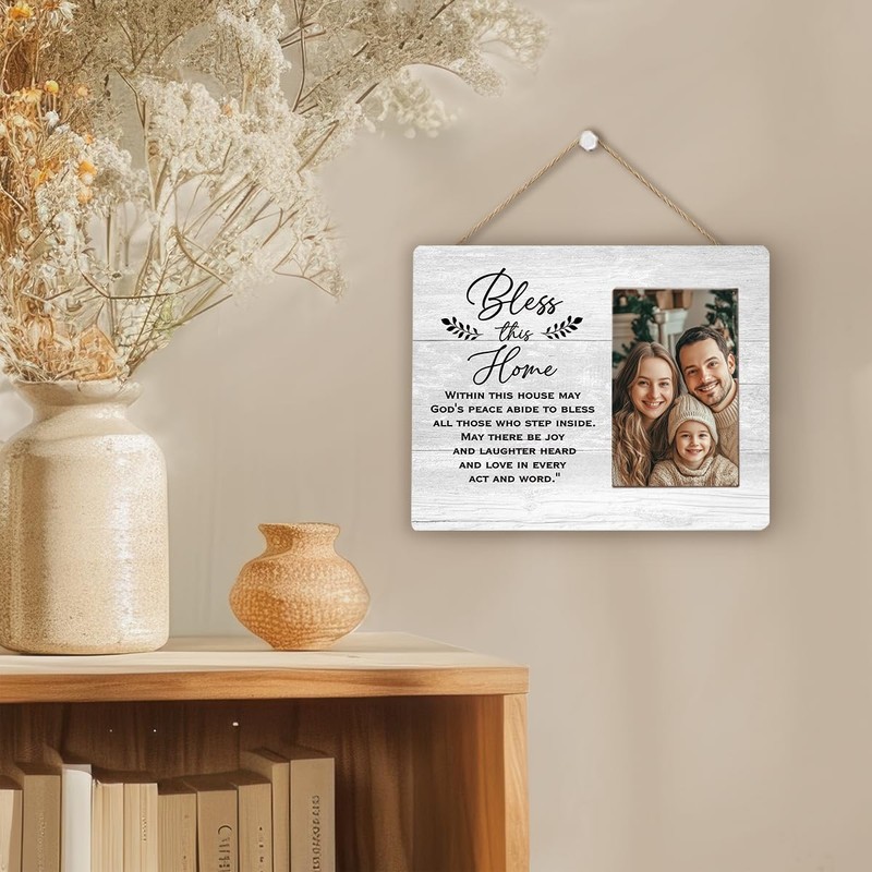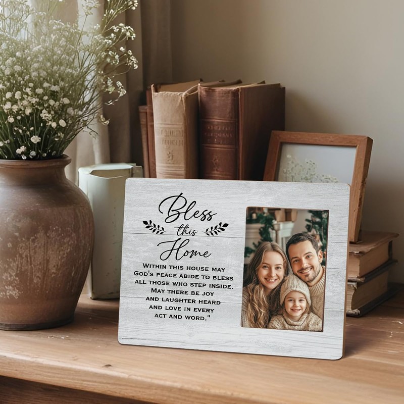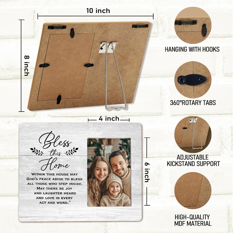 Lacama Bless This Home Family Picture Frame, 4x6, Rustic Wooden, Gray, Tabletop and Wall Mount, Perfect for Personalization, Housewarming Gifts, Family Gifts
