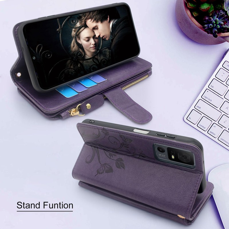 Lacass Case for Jitterbug Smart4,[Cards Theft Scan Protection] Card Holder Zipper Wallet Case Flip Leather Cover for Jitterbug Smart 4 (2023) for Seniors (aka Lively Smart) (Floral Dark Purple)