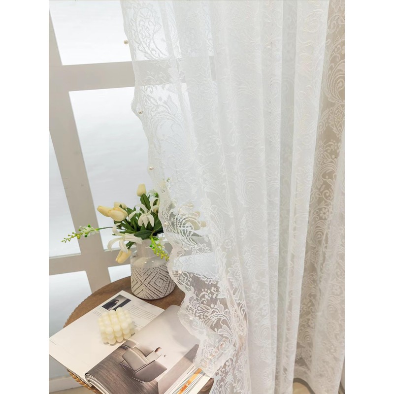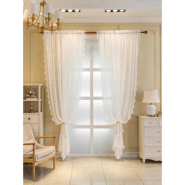 Lace Curtains for Windows 63 inch Drop Vintage Net Curtains for Old House Shabby Chic Sheer Voile Curtains 2 Panels White Curtains