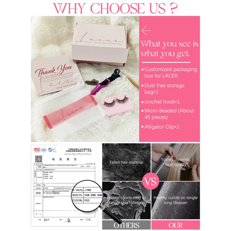 - 【Lacer Hair】 We Have Our Own Factory! All of the Lacer hair are Made of the Original Human Hair Cut from the Young Women. Lacer Staff are Constantly Pursuing to Improve the Quality of the Product. And We Accept Customization, If You Need Customization and Wholesale, Please Feel Free to DM Us:)