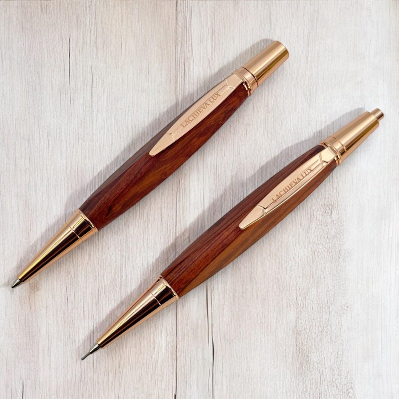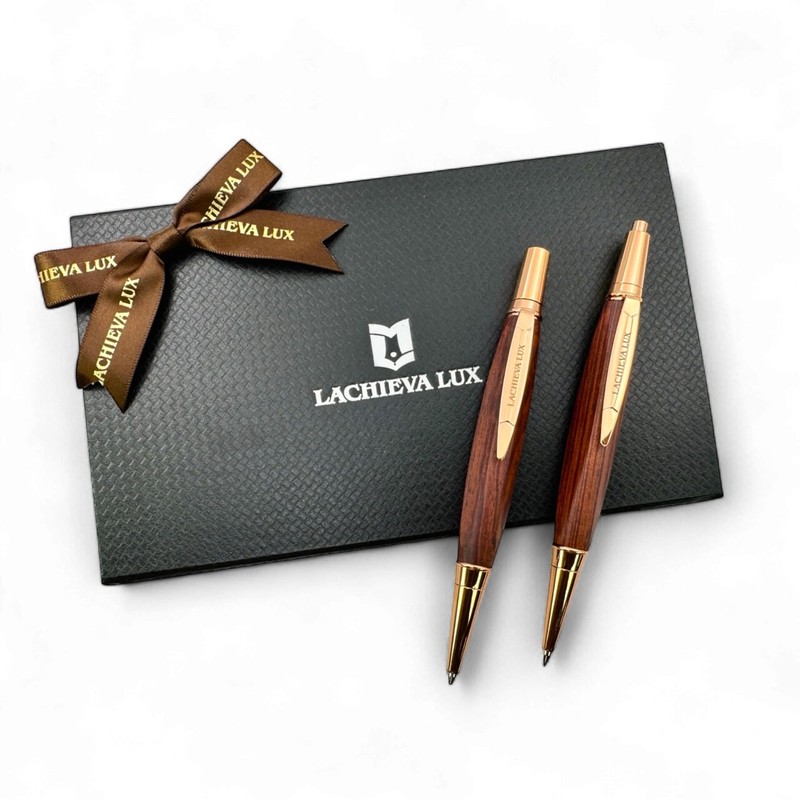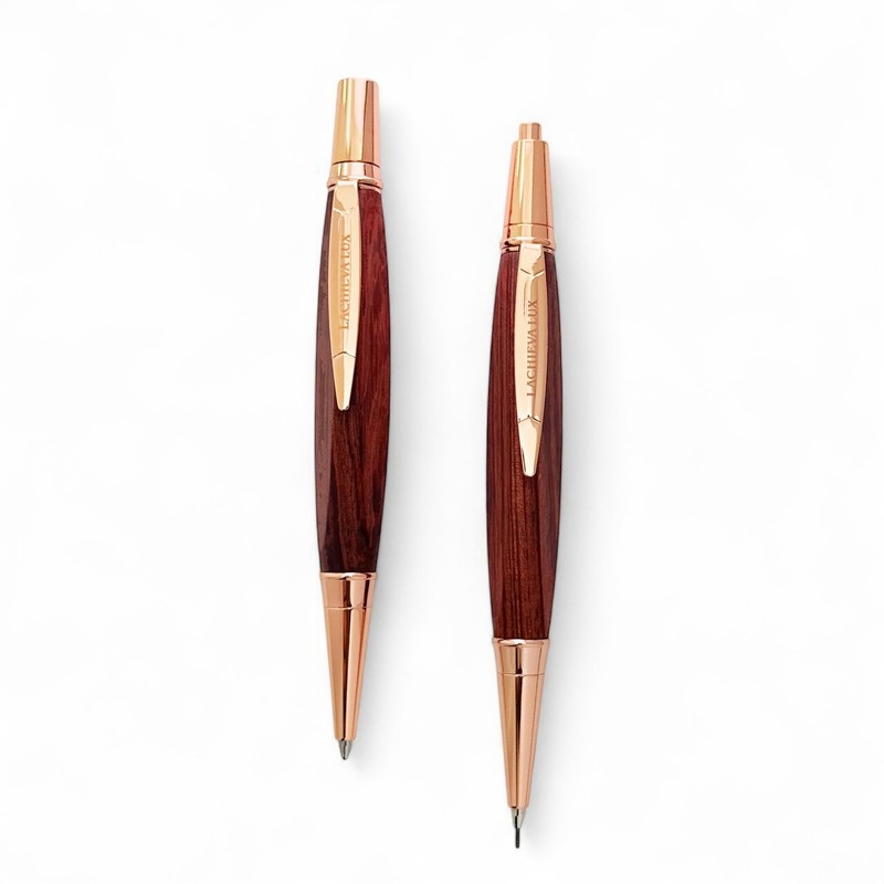 LACHIEVA LUX Elegant Rosewood Ballpoint Pen and Mechanical Pencil Set with Triangle Grip, Luxury Writing Gift for Men and Women