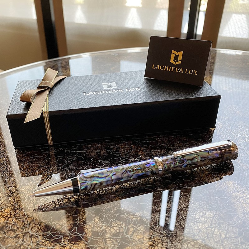 LACHIEVA LUX Premium Writing Instruments Natural Seashell Abalone Oil Based Ballpoint Pen German Nib Gift