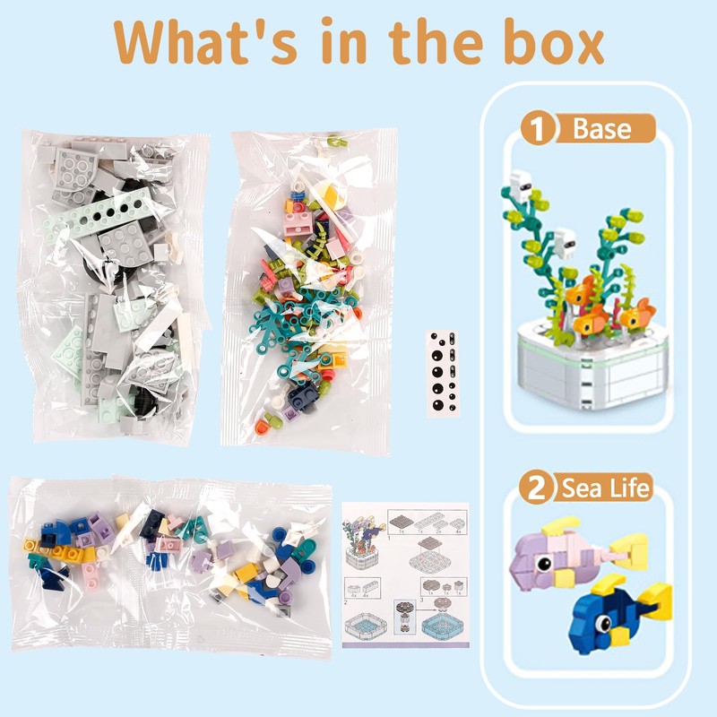 - Our mini building set for adults features an array of sea animals including sharks, clownfish, surgeonfish, turtles, crabs, and more. There are many parts in the set, you can build an entire underwater world that’s both entertaining and educational.