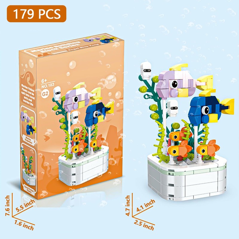 LACHLAND Potted Building Blocks Sets for 179 PCS, Surgeonfish Potted Plant Sea Animal Building Blocks, Mini Building Sets Toys for Boys and Girls 3 4 5 6 7 8 9 Years Old